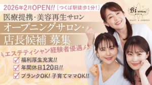 求人募集!オープニングSTAFF募集!つくば駅徒歩1分に地域初!医療提携・再生美容サロンがディールつくば1Fに来春open
